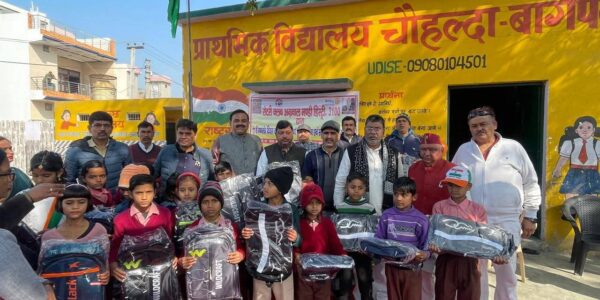प्राथमिक विद्यालय चौहल्दा में बच्चों को मिले स्कूल बैग व स्टेशनरी