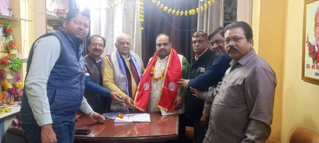 बैठक में संगठन के पदाधिकारियों ने उन्हें पटका पहनाकर व माल्यार्पण कर स्वागत किया।