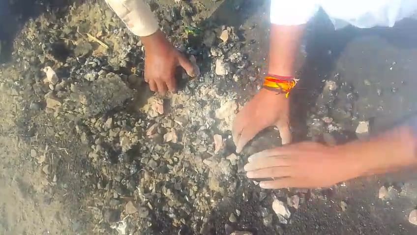 ग्रामीणों का आरोप — घटिया सामग्री से तैयार की जा रही सड़क एक दिन भी नहीं टिक पाई।